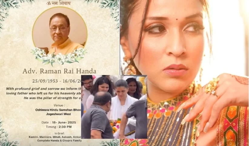 बुधवार को आयोजित अपने पिता रमन राय हांडा के अंतिम संस्कार में अभिनेत्री मन्नारा चोपड़ा और उनकी बहन मिताली हांडा को दुख में डूबते हुए देखा गया। बिग बॉस 18 की पूर्व प्रतियोगी ने दाह संस्कार के दौरान अपने पिता की अर्थी को कंधा देने की जिद करते हुए स्पष्ट रूप से दुखी दिखाई दीं।