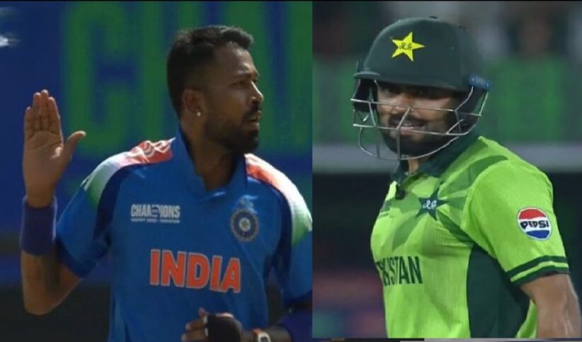 भारत और पाकिस्तान हाईवोल्टेज मुकाबला रविवार को दुबई में खेला जा रहा है। जहां पाकिस्तान ने टॉस जीतकर पहले बल्लेबाजी कर रही है। हालांकि, भारतीय गेदंबाजों ने पाकिस्तान के इस निर्णय को गलत साबित करके पावरप्ले में ही दो विकेट झटके। भारत के स्टार ऑलराउंडर हार्दिक पंड्या ने पाकिस्तान के सलामी बल्लेबाज बाबर आजम को आउट करके पहली सफलता दिलाई। इसके बाद सोशल मीडिया पर हार्दिक पंड्या का बाबर आजम को आउट करने के बाद का रिएक्शन वायरल हो रहा है।