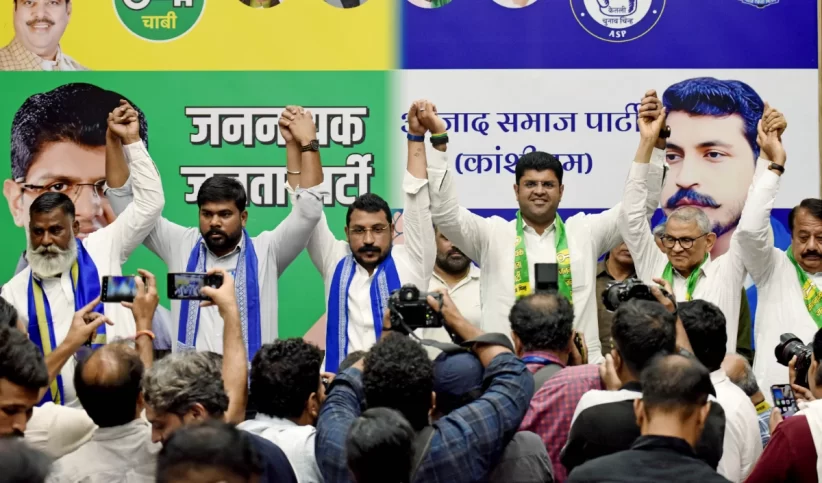जननायक जनता पार्टी (जेजेपी) और आजाद समाज पार्टी (एएसपी) गठबंधन ने बुधवार को आगामी हरियाणा विधानसभा चुनाव 2024 के लिए 19 उम्मीदवारों की पहली सूची जारी की। जेजेपी प्रमुख दुष्यंत चौटाला उचाना कलां निर्वाचन क्षेत्र से चुनाव लड़ेंगे। आजाद समाज पार्टी ने 19 में से चार उम्मीदवारों के नाम की घोषणा की। इससे पहले चुनावी राज्य हरियाणा में दलित वोटों की लड़ाई ने उस समय एक और मोड़ ले लिया जब दुष्यन्त चौटाला के नेतृत्व वाली जननायक जनता पार्टी ने चन्द्रशेखर आजाद के नेतृत्व वाली आजाद समाज पार्टी (कांशी राम) के साथ चुनावी गठबंधन की घोषणा की थी।