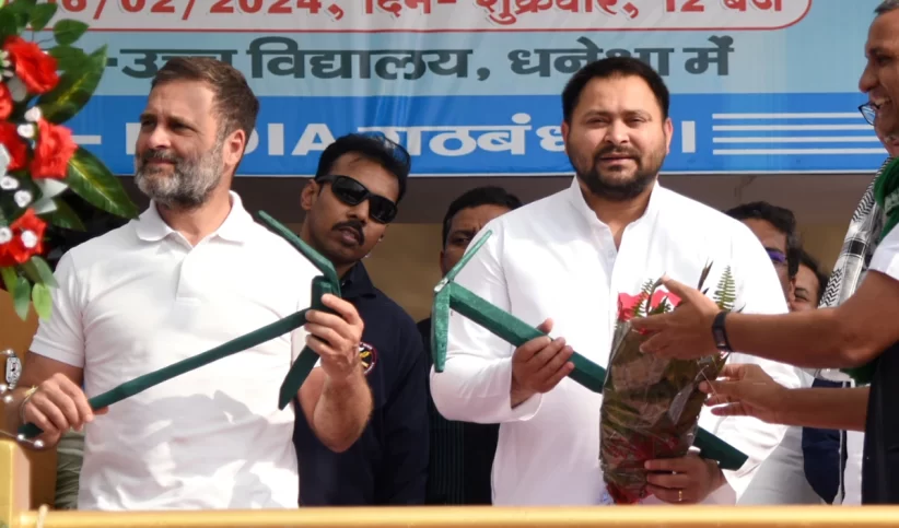 कांग्रेस नेता राहुल गांधी की ‘‘भारत जोड़ो न्याय यात्रा’’ शुक्रवार को बिहार के सासाराम जिले से फिर से शुरू हुई और राष्ट्रीय जनता दल (राजद) के नेता तेजस्वी यादव इस यात्रा में शामिल होने के साथ कांग्रेस नेता के सारथी की भूमिका में दिखाई दिए। कांग्रेस सांसद राहुल ने रोहतास जिले के डेहरी मुफस्सिल थाना अंतर्गत जमुहार में रात्रि विश्राम के बाद तेजस्वी के साथ एक लाल खुली जीप में सवार होकर यात्रा कीशुरुआत की। तेजस्वी जीप चला रहे थे वहीं कांग्रेस नेता राहुल बगल की सीट में बैठे थे। जीप में पीछे लोकसभा की पूर्व अध्यक्ष मीरा कुमार बैठी हुईं थीं। दोनों युवा नेताओं ने सड़क पर एकत्र भीड़ की ओर हाथ हिला कर उनका अभिवादन किया।