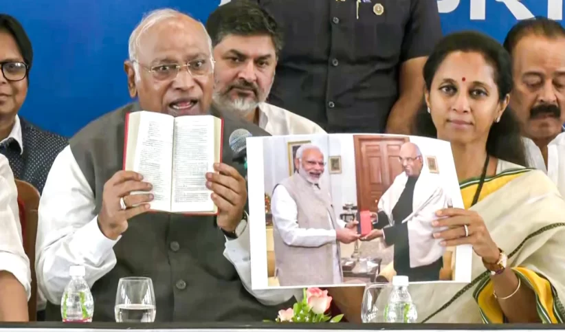 मुंबई। कांग्रेस अध्यक्ष मल्लिकार्जुन खरगे ने संविधान की ‘लाल किताब’ की तुलना ‘शहरी नक्सलवाद’ से करने के लिए नरेन्द्र मोदी और भारतीय जनता पार्टी (भाजपा) की रविवार को आलोचना की और कहा कि प्रधानमंत्री ने 2017 में तत्कालीन राष्ट्रपति रामनाथ कोविंद को इसी तरह की प्रति दी थी।