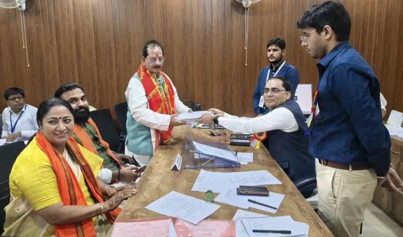 बिहार के उपमुख्यमंत्री विजय सिन्हा ने बुधवार को लखीसराय से अपना नामांकन दाखिल किया। बिहार के उपमुख्यमंत्री सम्राट चौधरी और दिल्ली की मुख्यमंत्री रेखा गुप्ता भी मौजूद थीं। इससे पहले, दिल्ली की मुख्यमंत्री रेखा गुप्ता ने राज्य में हो रहे विकास कार्यों पर प्रकाश डाला और उम्मीद जताई कि राष्ट्रीय जनतांत्रिक गठबंधन (एनडीए) सरकार बनाएगी। मुख्यमंत्री ने कहा कि आगामी चुनावों में प्रधानमंत्री नरेंद्र मोदी और नीतीश कुमार निश्चित रूप से एक मजबूत सरकार बनाएंगे।