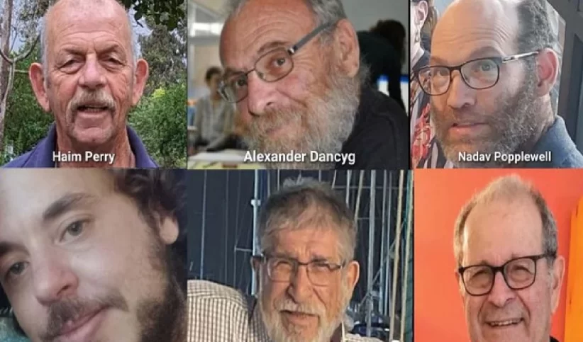 इजराइली अधिकारियों ने मंगलवार को कहा कि खान यूनिस में रात भर चले सैन्य अभियान के दौरान गाजा से छह इजराइली बंधकों के शव बरामद किए गए हैं। एक संयुक्त घोषणा में इज़राइल रक्षा बल (आईडीएफ) और इज़राइली सुरक्षा एजेंसी (आईएसए) ने उनका नाम योरम मेट्ज़गर, अलेक्जेंडर डेन्सिग, अव्राहम मुंडेर, चैम पेरी, नदाव पोपवेल और यागेव बुचशताब रखा है। हाल के महीनों में इजरायली सेना ने मुंडेर को छोड़कर बाकी सभी को मृत घोषित कर दिया था। इजरायली प्रधानमंत्री बेंजामिन नेतन्याहू ने मंगलवार को एक बयान में कहा कि आज रात हमारी सेना ने हमारे छह बंधकों के शव लौटा दिए, जिन्हें जानलेवा आतंकवादी संगठन हमास ने पकड़ रखा था। उन्होंने कहा कु भयानक नुकसान से हमारा दिल दुखता है।