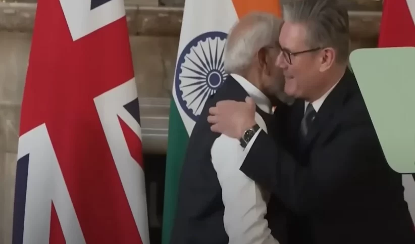 भारत के प्रधानमंत्री अपना ब्रिटेन का दौरा समाप्त करने के बाद इस वक्त मालदीव के राष्ट्रपति मोहम्मद मुइज्जू की मेजबानी का आनंद उठा रहे हैं। लेकिन पीएम मोदी की ब्रिटेन यात्रा का एक वाक्या सोशल मीडिया से लेकर ब्रिटिश मीडिया तक की सुर्खियों में है। भारत और ब्रिटेन के बीच 3 सालों की 14 दौर की लंबी बातचीत के बाद फ्री ट्रेड एग्रीमेंट पर बीते दिनों हस्ताक्षर हो गए। जिसके बाद दोनों देशों के शीर्ष नेताओं ने अपनी बात रखने और इस डील के बारे में मीडिया को बताने के लिए ज्वाइंट प्रेस कॉन्फ्रेंस भी रखी। लेकिन जब ब्रिटेन के प्रधानमंत्री कीर स्टार्मर बोल रहे थे तो इस दौरान एक ऐसा पल जब प्रधानमंत्री मोदी ने न सिर्फ प्रेस कॉन्फ्रेंस को संभाला बल्कि एक अंग्रेज देश का दिल भी जीत लिया। दरअसल, भारत और ब्रिटेन के बीच बहुप्रतिक्षित फ्री ट्रेड एग्रीमेंट पर आखिरकार साइन हो गया। लंदन में दोनों देशों के प्रधानमंत्री नरेंद्र मोदी और कीर स्टार्मर की मौजूदगी में ये ऐतिहासिक समझौता हुआ। इस समझौते से व्यापार निवेश और रणनीतिक साझेदारी के नए रास्ते खुलेंगे। लेकिन इसी प्रेस कॉन्फ्रेंस के दौरान कुछ ऐसा हुआ जो इंटरनेट पर वायरल हो गया।
