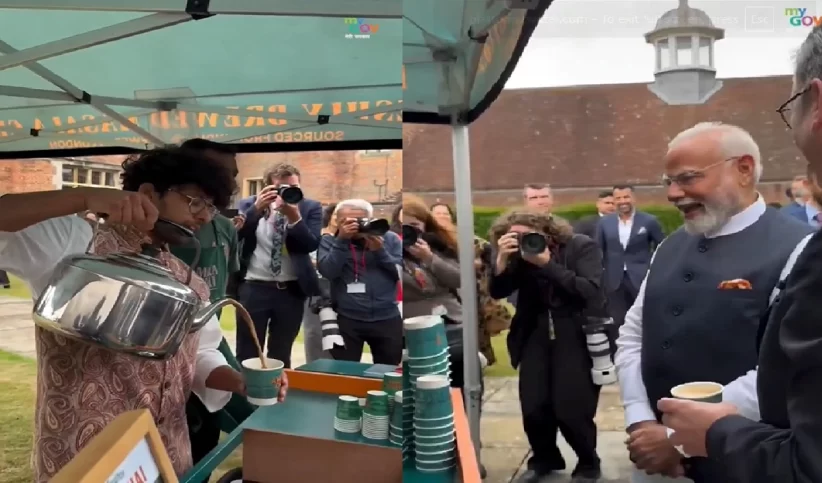 बचपन में गुजरात के वडनगर के रेलवे स्टेशन पर चाय बेचने वाले भारत के प्रधानमंत्री मोदी ब्रिटेन आए तो चाय पर चर्चा” होना लाज़मी हो जाता है क्योंकि यूके अपनी चाय के प्रति जुनून के लिए जाना जाता है। ब्रिटेन स्थित एक भारतीय चाय विक्रेता के स्टॉल पर विश्व के दो शक्तिशाली नेता चाय की चुस्की लेते दिखे। प्रधानमंत्री मोदी और उनके ब्रिटिश समकक्ष कीर स्टारमर ने ब्रिटेन के प्रधानमंत्री के आधिकारिक निवास चेकर्स में ऐतिहासिक मुक्त व्यापार समझौते (FTA) पर हस्ताक्षर के अवसर पर एक कप चाय पी। लॉन में अमला चाय के मालिक, भारतीय मूल के उद्यमी अखिल पटेल ने एक चाय की दुकान लगाई थी। पटेल और प्रधानमंत्री मोदी के बीच हुई यह दिल को छू लेने वाली बातचीत अब वायरल हो गई है।