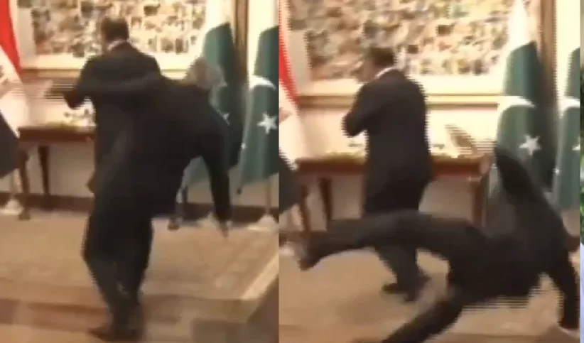 पाकिस्तान के उप प्रधानमंत्री इशाक डार के साथ रेड कार्पेट पर एक अजीब घटना घटी, जब मध्य पूर्व में तनाव कम करने की वार्ता के लिए इस्लामाबाद में मिस्र के विदेश मंत्री बदर अब्देलत्ती का स्वागत करते समय उनका संतुलन बिगड़ गया और वे फिसल गए। औपचारिक राजनयिक स्वागत समारोह के दौरान डार (जो पाकिस्तान के विदेश मंत्री भी हैं) के रेड कार्पेट पर गिरने का वीडियो सोशल मीडिया पर वायरल हो गया है। वीडियो में दिख रहा है कि डार अतिथि का अभिवादन करने के लिए आगे बढ़े तो उनका संतुलन बिगड़ गया और वे जमीन पर गिर गए। पास खड़े सुरक्षाकर्मियों ने तुरंत उनकी सहायता की। अधिकारियों ने बाद में बताया कि गिरने से मंत्री के कंधे में मामूली फ्रैक्चर हुआ है, लेकिन उन्होंने निर्धारित समय के अनुसार बैठक जारी रखी। यह घटना इस्लामाबाद में पाकिस्तान, मिस्र, तुर्की और सऊदी अरब के विदेश मंत्रियों की चतुर्भुजीय बैठक के दौरान घटी, जिसमें अमेरिका और ईरान के बीच तनाव कम करने पर चर्चा हुई।